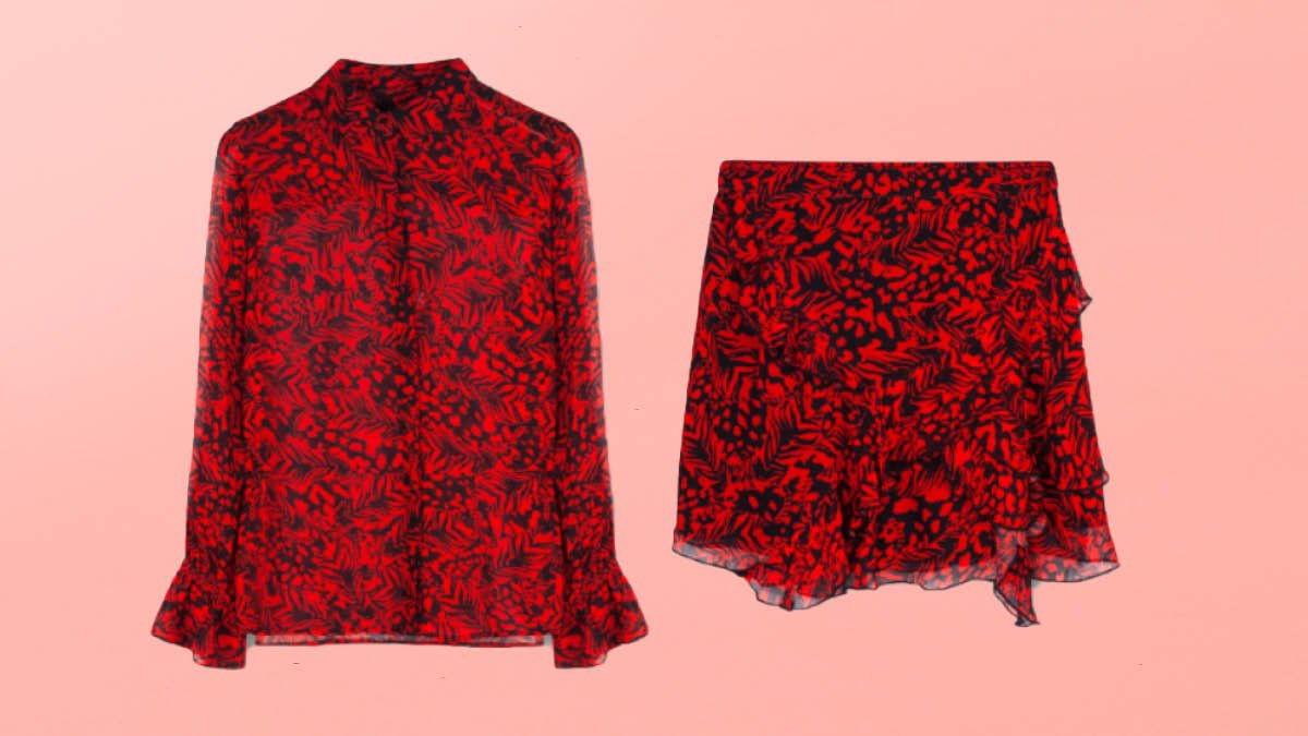 Stoere dierenprints, luchtige stoffen en vrolijke ruches: dit wil je hebben, hoor. Met deze rood-zwarte set kom je warme dagen moeiteloos in stijl door, of dat nu in een strandtent is of op kantoor. Maak nu kans op 1 van de 6 sets (rok + blouse) van Alix The Label twv € 180!