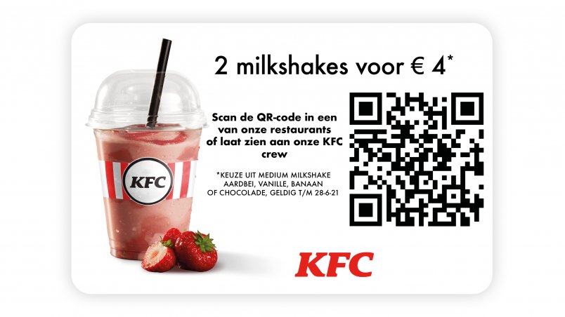 En goed nieuws want op de cover van &C's juninummer 'Lekker sportief', vind je een kortingspas waarmee je twee milkshakes voor maar vier euro haalt. Hatsee. Kan je meteen je slag slaan. Wist je trouwens dat je bij KFC ook gezellig op het terras kunt zitten? Een momentje voor jezelf. Zie het als een cooling down na je work-out, letterlijk dan. En verkeer je in goed gezelschap? Strikje om de shake en trakteren maar!