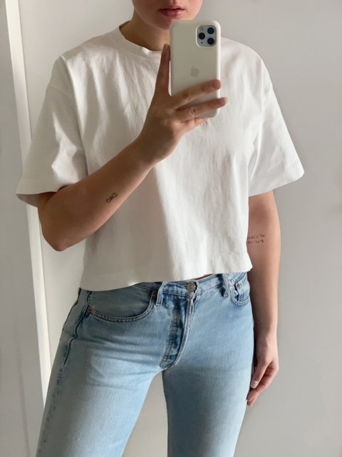 'Dit t-shirt heb ik tweedehands gekocht via Vinted. Dit is echt een goede prijs, want normaal zijn ze 160 euro. Het meisje dat hem verkocht had hem zelf maar één keer gedragen en de top was als nieuw. Acne Studios is een van mijn favoriete merken, maar het is wel prijzig. Gotta love Vinted!'