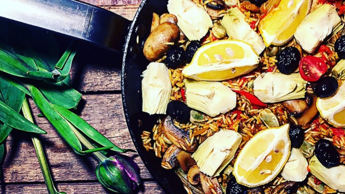 1. Verhit olijfolie in een braadpan, koekenpan, paellapan of welke andere grote pan je hebt.