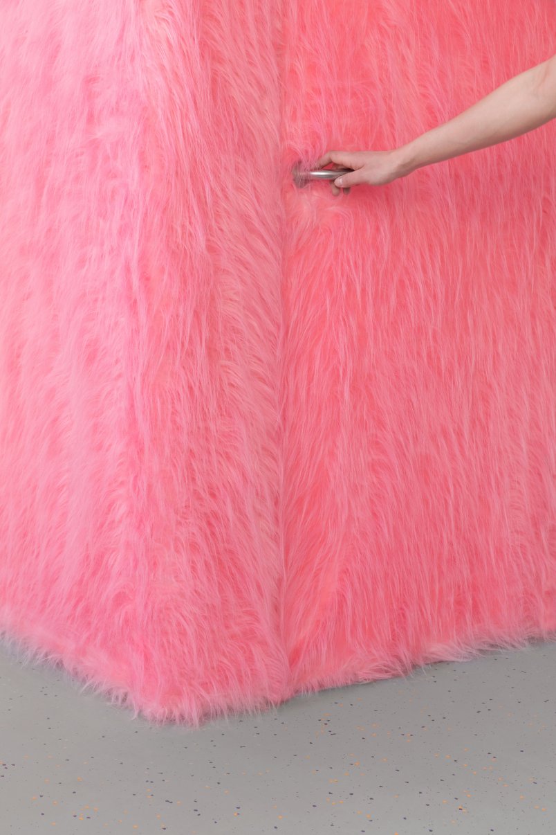 Dat modewinkels rare dingen kunnen doen met ons brein is wellicht geen verrassing. Maar de behoefte opwekken om een pashokje te knuffelen? Dat is iets nieuws. Bij het zien van de aaibare muren midden in de Like Shop kun je echter niet anders. Geïnspireerd door de zwierige romantische ‘petal dresses’ uit de lente/zomer 2018 collectie van modehuis Alexander McQueen, besloot interieurontwerper Eduard Eremchuk de pluche pashokjes midden in de winkel neer te plempen.