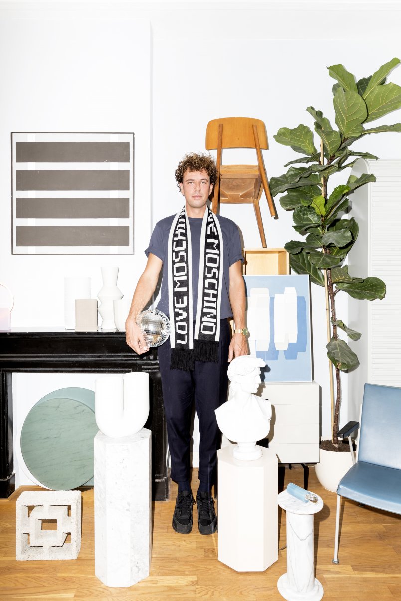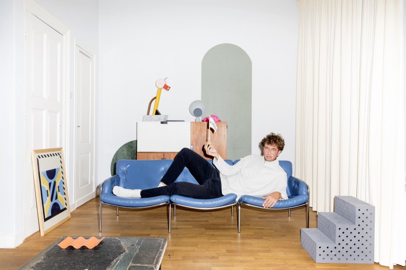 'Ik stapel meubels op elkaar en zet een stoel op z'n kop. Zo creëer ik een wereld met spullen. Het idee is ooit ontstaan tijdens een shoot, waar alles samenkwam. Ik ben ook grafisch vormgever geweest en wat ik toen op papier deed, doe ik nu in 3D. Het is een manier om mijn spullen te showcasen. De composities die ik maak, zet ik op Instagram. Regelmatig kloppen volgers bij me aan om iets te kopen. Mijn huis is in die zin mijn visitekaartje, daarom noem ik het The Curated Home.'
