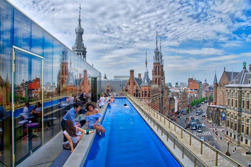 Dit is wat je wilt toch? Zwemmen op het mooiste dak van Amsterdam, met uitzicht op het Paleis op de Dam. Stel je voor dat je hier heerlijk met je cocktail aan het chillen bent en de zon onder ziet gaan. Op deze plek vang je namelijk de hele dag zon. Het zwembad is openbaar te bezoeken en daarnaast heeft het W hotel ook een prachtige spa waar je heerlijk kunt relaxen.