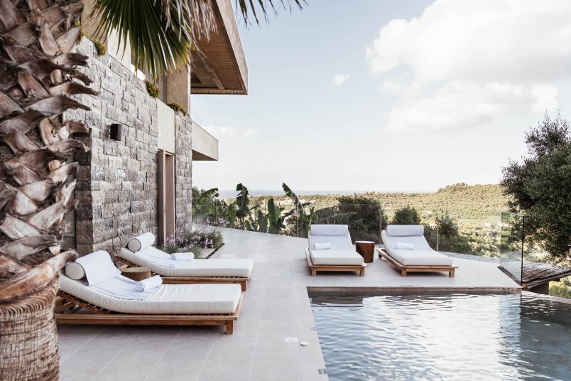 Op de heuvel boven de noordkust van Tsilivi kun je je batterij opladen in het designhotel Olea All Suite Hotel. Eigenares Venia Xenou en haar familie bezitten twaalf hotels op het eiland, waarvan Olea All Suite Hotel de nieuwste is. Ze hebben de nodige ervaring en dat is te zien: aan werkelijk alles is gedacht. De rustige kamers zijn ingericht met natuurlijke materialen en aardetinten. Het terras vloeit over in je eigen privézwembad, met een uitzicht over het land of de Ionische Zee. We snappen het als je alle excursies laat voor wat ze zijn, want je hoeft het hotel niet uit. Breng de ochtend door in je sterrenspa, relax ’s middags aan het zwembad en bestel een cocktail bij de O Bar of F Bar. Zin om ’s avonds romantisch uit eten te gaan? In Flow Dine & Wine weten ze hoe ze moeten koken – met biologische en lokaal geproduceerde producten, waarmee traditionele Griekse gerechten in een modern jasje worden gestoken. Of check de twee andere restaurants op het resort: Omikron Restaurant en Cocoon Restobar. De enige stress die op de loer ligt, is keuzestress.