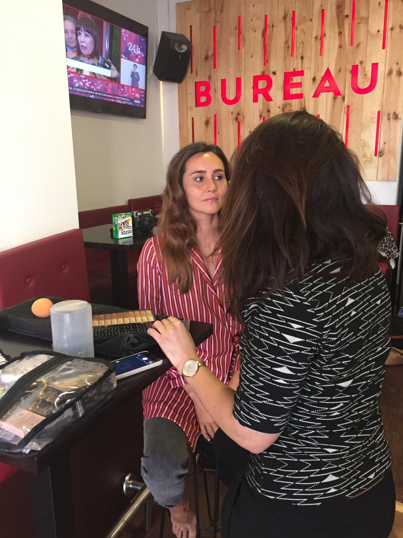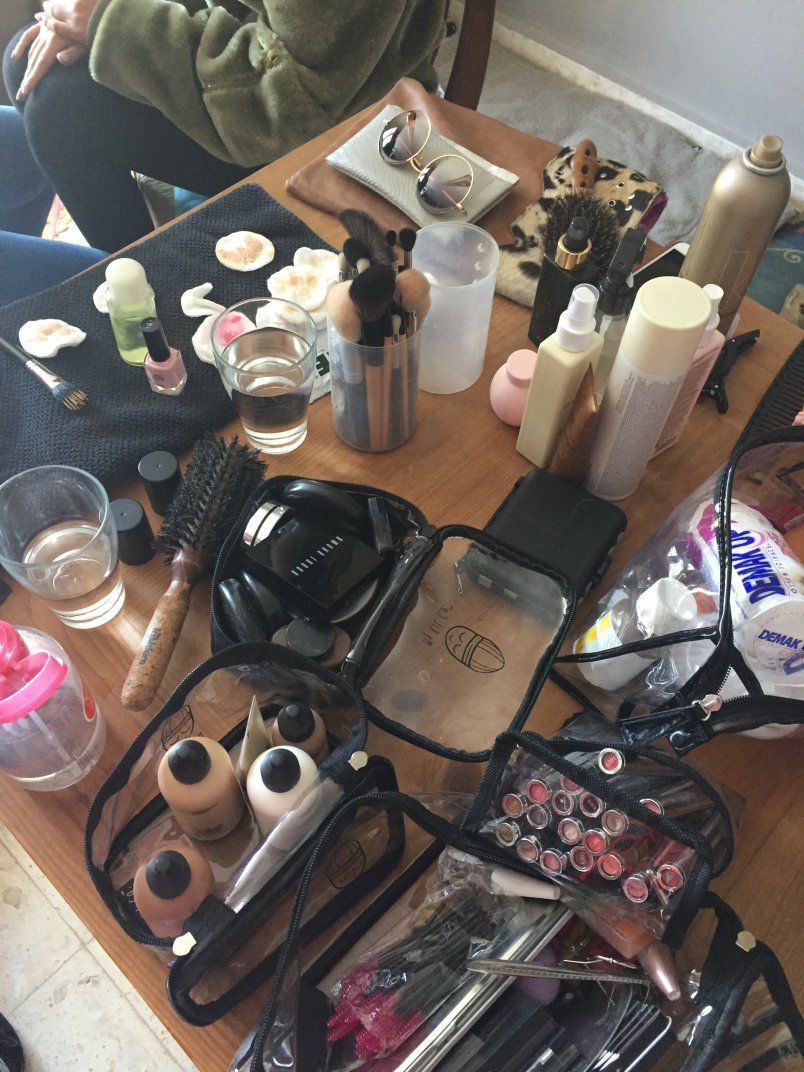 We verzamelen om 6.00 uur ’s ochtends op Eindhoven Airport, waar onze vlucht om 8.00 uur zal vertrekken. Als zombies komen we aan op de luchthaven, aangezien we al om half vijf ons bed uit rolden. Eerst maar koffie. Na ons cafeïnegehalte te hebben opgekrikt, checken we de koffer in. Oeps, die is 5,5 kilo te zwaar. Note to self: wanneer je een shoot in het buitenland doet en een visagiste meeneemt, boek dan een extra koffer bij. Al die make-up, krulborstels en stijltangen wegen heel wat.