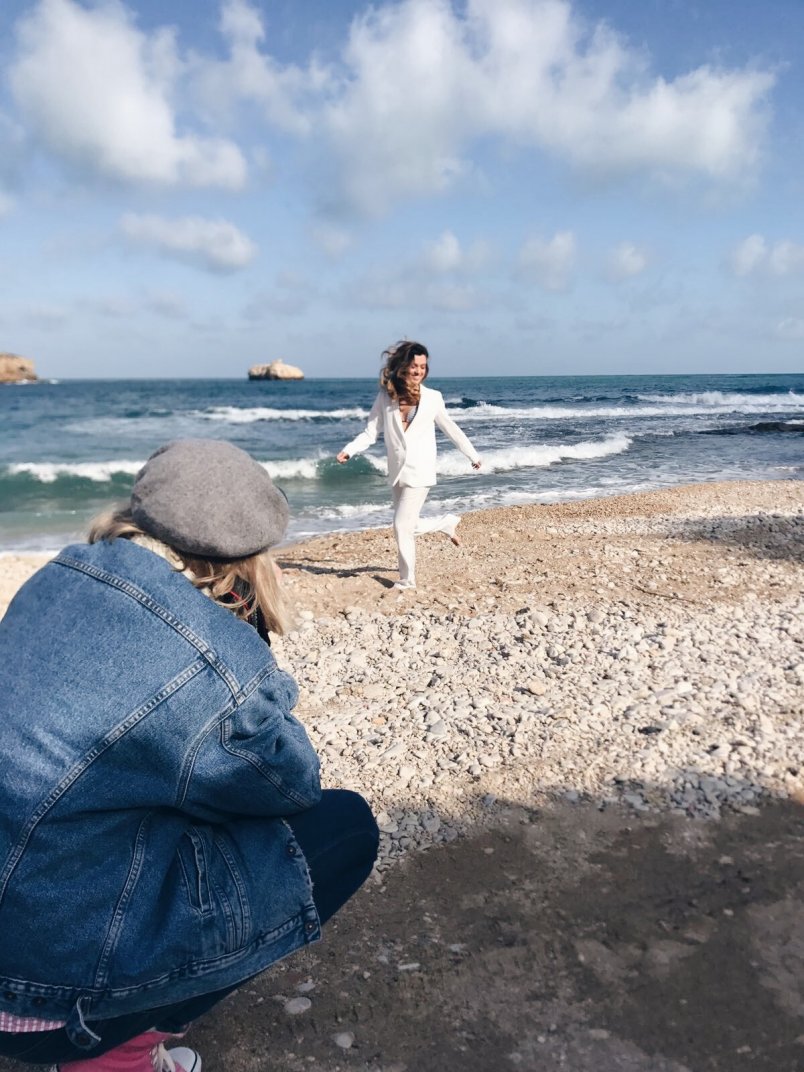 De volgende dag staan we vroeg op. De shoot met ons tweede Spaanse model Tina staat vandaag op het programma. We rijden naar een kleine baai met een verlaten kiezelstrand, voor het ‘A Day at the Beach’-gedeelte van onze shoot. Het is proppen, want we passen niet in de auto met zes personen. Dus stoppen we onze fotografe Robin in de kofferbak. Vindt ze gelukkig niet erg.