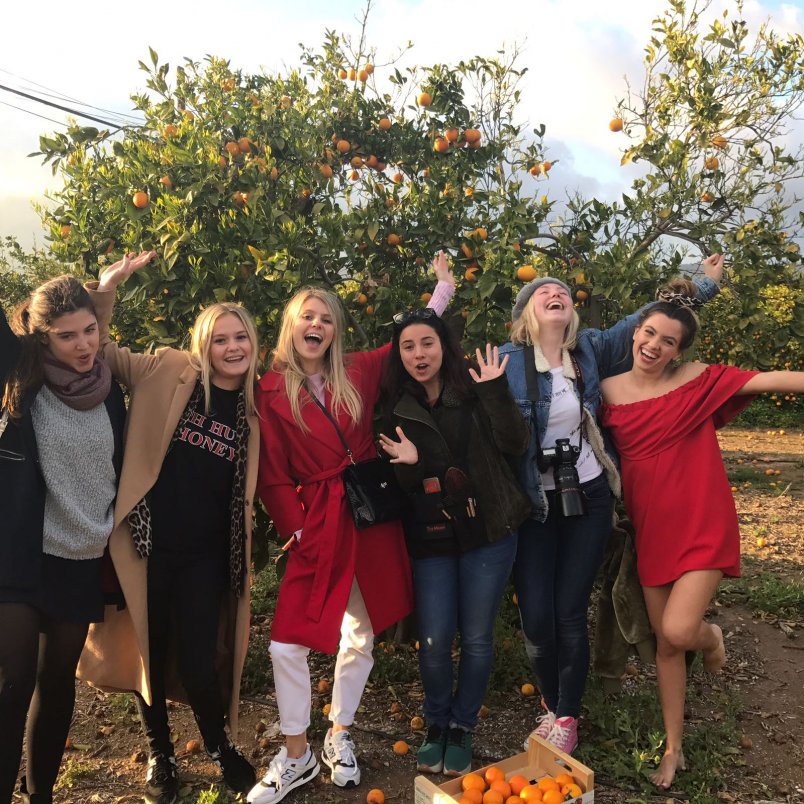 Na het strand rijden we door naar de sinaasappelboomgaard, waar het tweede deel van de shoot plaatsvindt. Het enige dat we zijn vergeten voor vandaag is een paar schoenen voor bij deze outfit, shit. Dan moet Tina maar op blote voeten sinaasappels plukken. Dat deden ze vroeger ook zo, toch?