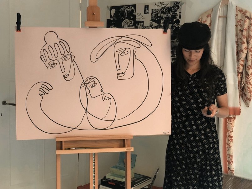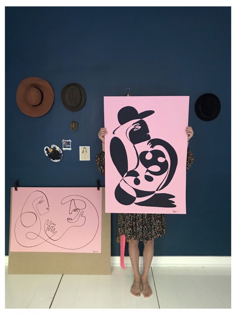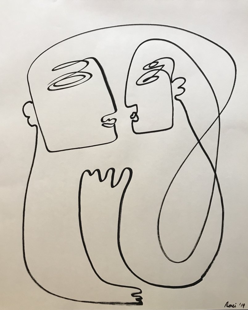 Anne Mei Poppe maakt one-line drawings vanuit haar studio in Amsterdam. Met haar huidige collectie genaamd ‘Entangled’ viert ze een van de belangrijkste dingen in het leven: de relaties met geliefden.